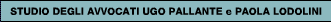 Lo STUDIO DEGLI AVVOCATI UGO PALLANTE e PAOLA LODOLINI è uno studio legale italiano che fornisce assistenza e servizi legali in vari campi di attività.